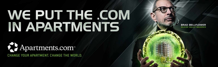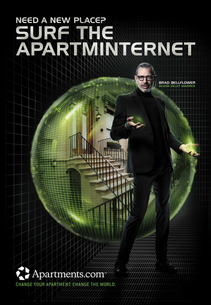 Рекламное агентство RPA разработало инновационную рекламную кампанию с участием актера Джеффа Голдблюма для сайта Apartments.com. Компания-владелец сервиса выделила на его продвижение солидные 100 млн долларов, часть из которых пойдет популярному актеру.