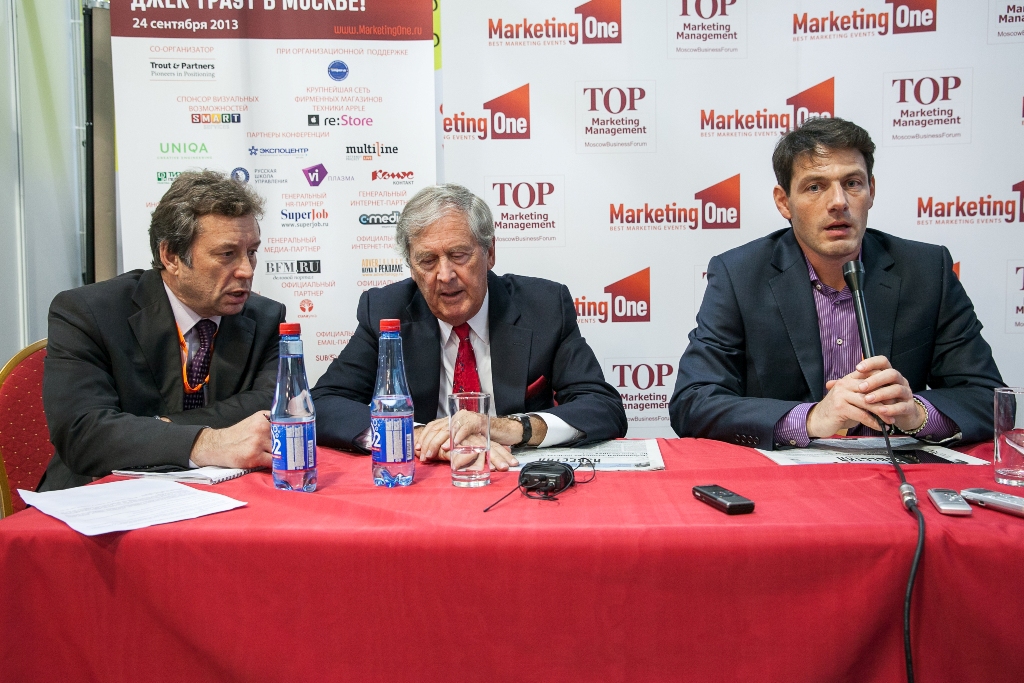 Его московская лекция была посвящена особенностям глобальной экономики в посткризисный период. Как выбрать маркетинговую стратегию, как позиционирование может стать стратегией выживания и как использовать подход дифференциации; как стать заметным для потребителя и увеличивать прибыль и продажи с помощью грамотного маркетинга; как выиграть в маркетинговой войне и как применять «партизанский маркетинг» – на эти и другие вопросы г-н Траут отвечал примерами из собственного опыта и международной практики.