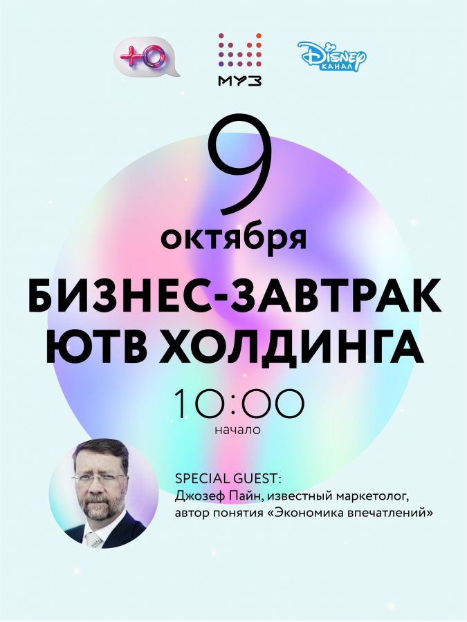 9 октября в 10:00 в Москве состоится бизнес-завтрак крупной медиакомпании «ЮТВ Холдинг». Главное событие мероприятия — презентация нового сезона каналов «Муз-ТВ», «Ю» и «Канала Disney».