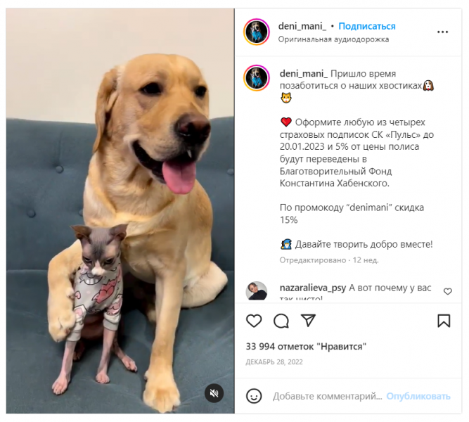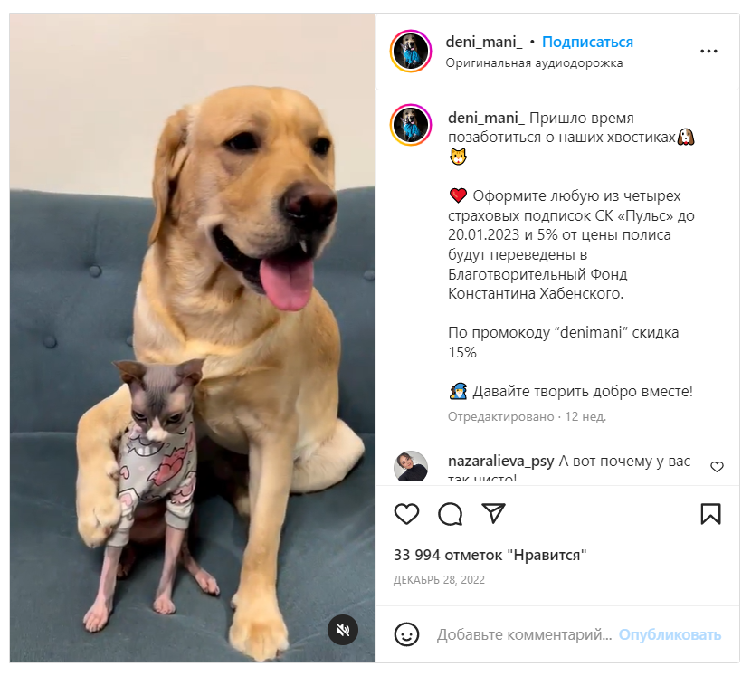 В случае со страховыми полисами для животных мы обращались также и к тем, кто ведёт блоги про жизнь питомцев. Это более доступный, развлекательный контент, который подаётся от имени персонажа-животного. Его потребляет, как правило, та же аудитория.