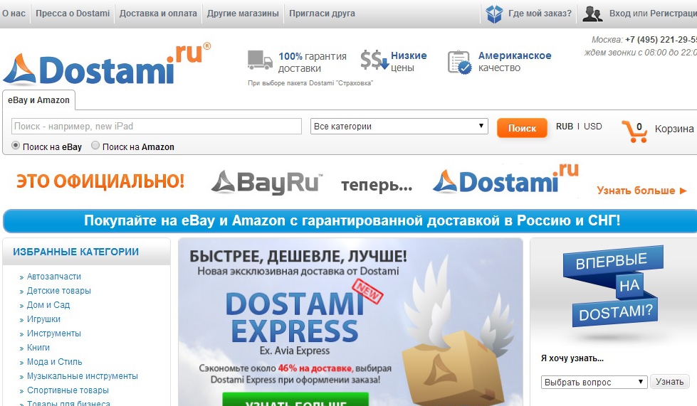 Компания Dostami.ru, оказывающая услуги по выкупу и доставке товаров из интернет-магазинов США в Россию и страны СНГ, первой из сервисов-посредников получила статус партнера онлайн-площадки eBay по доставке товаров в Россию.