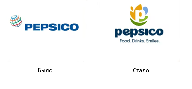 Компания PepsiCо сменила логотип впервые с 2001 года. Логотип со схематичным изображением планеты в виде цветных полос сменила эмблема в виде буквы P в окружении фигур различных цветов. Добавлен лозунг Food. Drinks. Smile. Об этом сообщается в пресс-релизе холдинга.