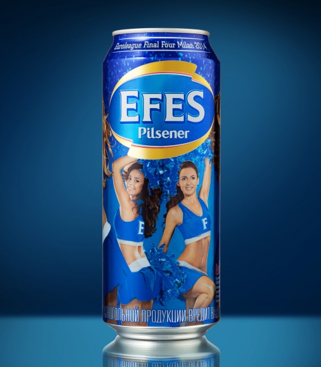 Компания Efes несколько лет подряд является официальным спонсором баскетбольной Евролиги. Отразить этот факт на упаковке было главной задачей агентства. Привлечь же внимание целевой аудитории креаторы решили при помощи самой привлекательной ассоциации с баскетболом – черлидерах: спорт, зажигательные девушки, яркая форма нашли свое место прямо на банке пива.