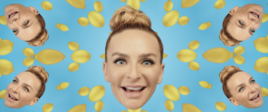 В серии макетов для наружной рекламы, сменяющих друг друга на протяжении года, Екатерина Варнава непременно оказывается под лимонным дождем в релевантных сезонам размещения образах.