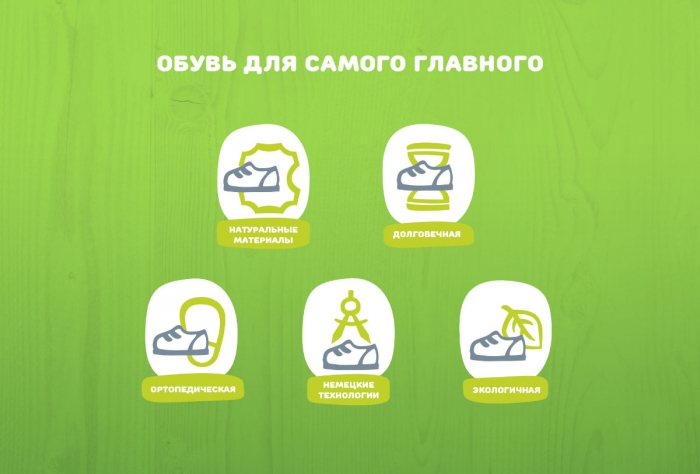 С помощью цветового решения фирменного стиля и упаковки дизайнеры хотели подчеркнуть натуральность, естественность и удобство обуви, которая поможет ребенку ощутить радость детства.