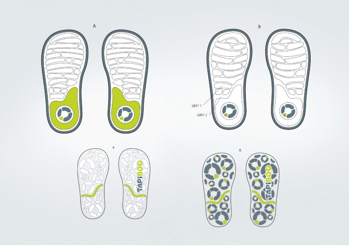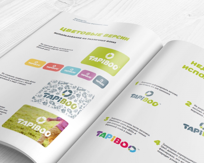 Название торговой марки TAPIBOO и дескриптор «Обувь для самого главного» были обозначены заказчиком. В рамках продолжения концепции символ бренда обрел неровные округлые формы и характерные элементы неточного соединения.
