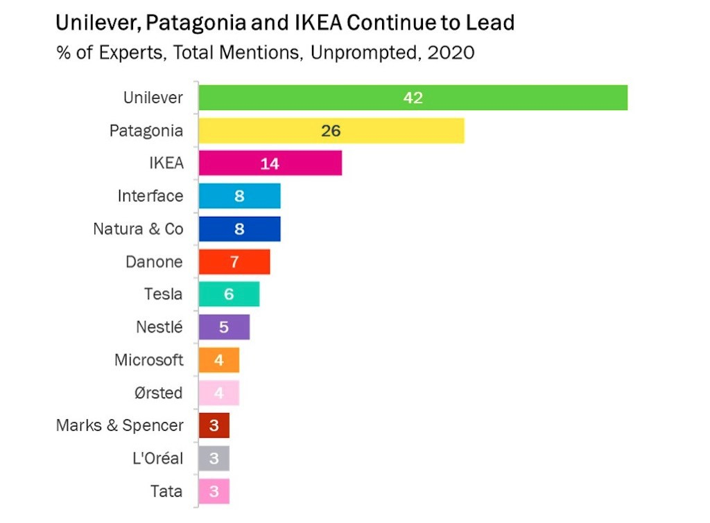 Инициативы отдельных компаний подхватили лидеры рынка, в числе первых Nike. В 90-х годах бренд запустил программу строительства новых игровых площадок из переработанных кроссовок. Практику отчетов о корпоративной социальной ответственности, которую сегодня выпускают крупнейшие компании, от РЖД до Microsoft, ввел производитель мороженого Ben & Jerry's (Unilever) — компания дополнила финансовый отчет обзором о влиянии компании на окружающую среду. Компании FMCG продолжают оставаться лидерами среди отраслей в environmental sustainability.