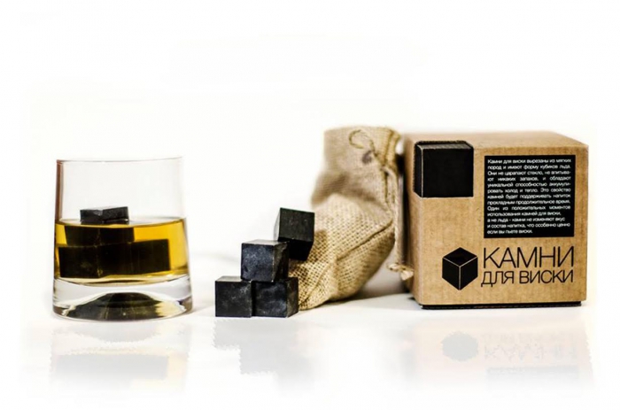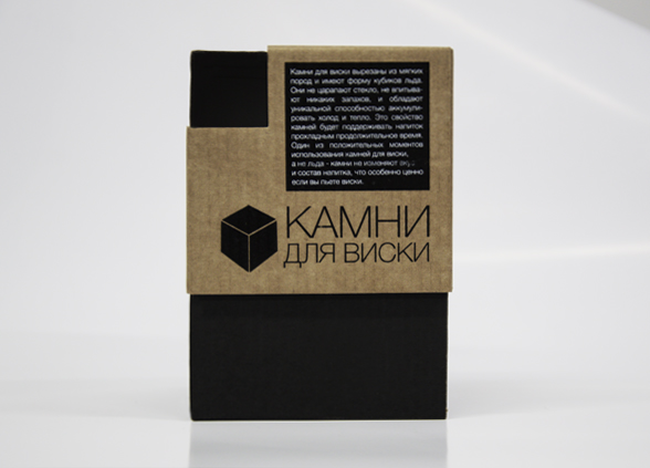Российский дизайнер Елизавета Кудряшова создала упаковку для необычного продукта – камней для виски компании "Гифт Девелопмент". Камни вырезаны из мягких пород и предназначены для постоянного поддержания прохладной температуры напитка.