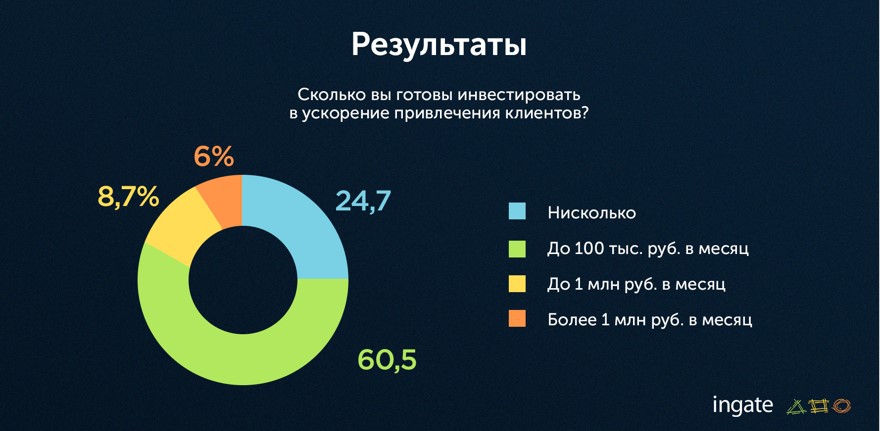 В конце доклада Никита попросил зрителей взять телефоны и пройти небольшой, но интересный опрос на нашем сайте и сразу увидеть результаты, — в конце концов, все привыкли «сидеть» в телефонах на конференциях. Там же можно было оставить свой e-mail и получить подборку бесплатных книг об интернет-маркетинге, скидку 20% на онлайн-курс Skillbox и возможность претендовать на бесплатную комплексную стратегию от Ingate.
