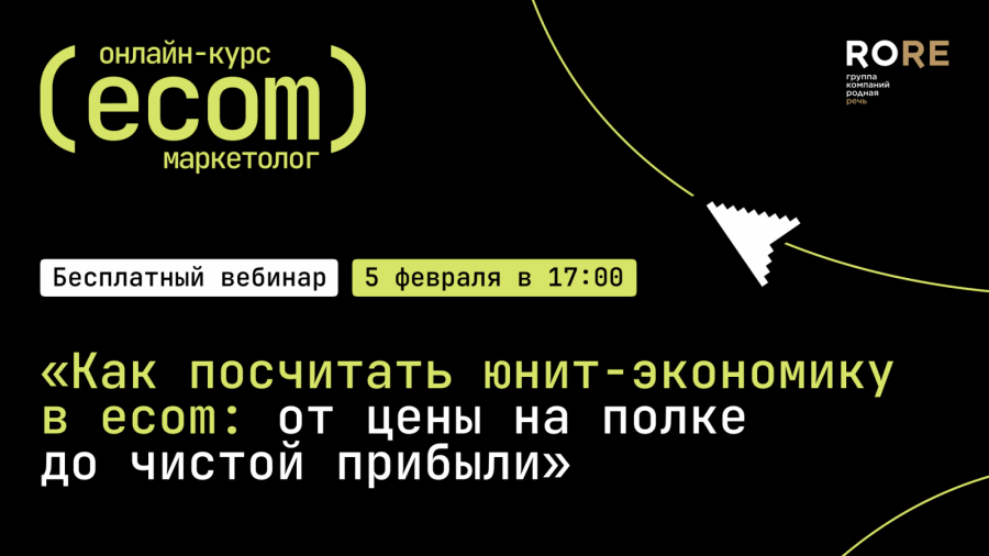 Чтобы дать участникам практическую ценность и познакомить их с экспертизой преподавателей будущего курса по e-commerce, 5 февраля в 17:00 (МСК) «Родная Речь» проведет вебинар «Как посчитать юнит-экономику в e-commerce: от цены на полке до чистой прибыли».