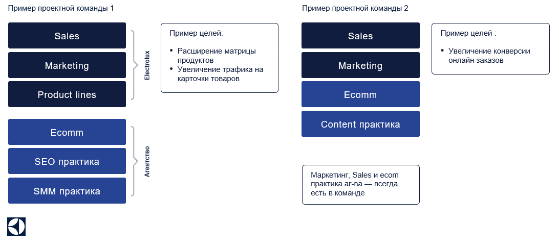 Для этого Electrolux вместе с Zenith перешли к новой модели сотрудничества — соуправлению в рамках проекта, значительно изменив структуру работы как внутри компании, так и на стороне агентства. Для достижения целей и реализации задач клиента агентство Zenith на своей стороне работало совместно с подразделением Commerce Practice в агентстве