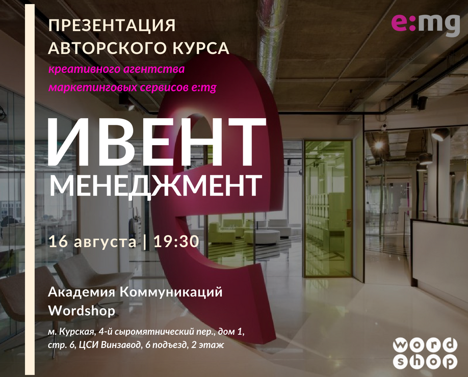 e:mg запускает свой авторский курс «Ивент менеджмент» на базе академии коммуникаций Wordshop.
