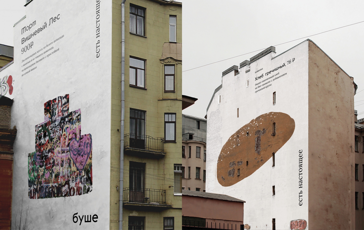 Наружная реклама «буше» выйдет за пределы привычных рекламных постеров и задействует все городское пространство, включая фасады домов. В городе появилась партизанская реклама.
