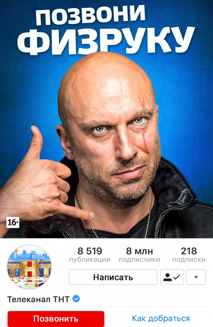 Новый сезон культового телесериала «Физрук» стартовал вчера. В преддверии выхода на ТНТ провели большую рекламную кампанию, задействовав digital и BTL. В рамках анонсирующей digital-активации в соцсети Instagram впервые ожила кнопка «позвонить». По ней можно дозвониться на автоответчик главному герою Фоме и решить проблему.