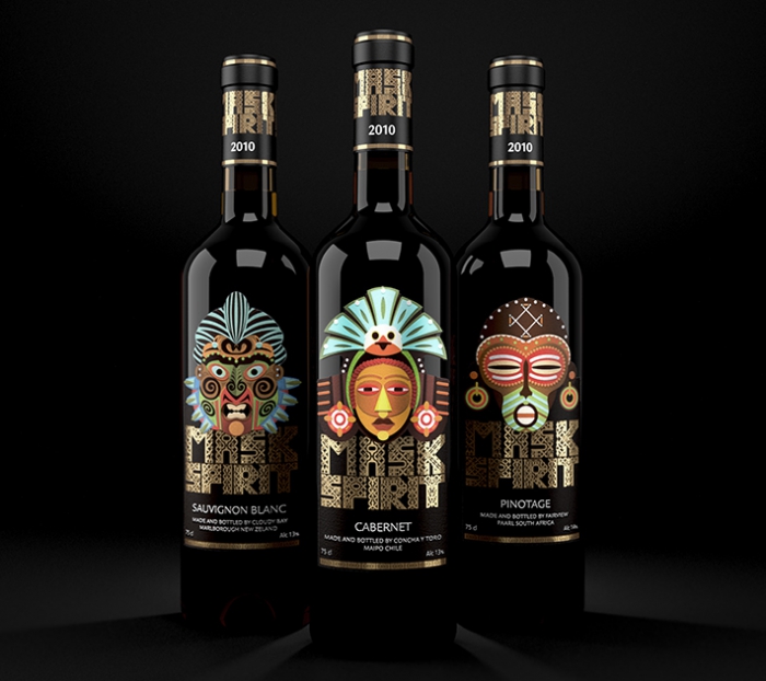 Агентство Brandiziac представило дизайн этикетки для коллекции вин Mask Spirit. В дизайне креаторы использовали объемные аппликации. Каждая маска является стилизацией аутентичных масок, до сих пор используемых коренным населением Новой Зеландии, Чили и ЮАР. Именно эти страны являются родиной вин, отобранных в коллекцию.