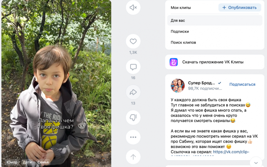Блогеры публиковали ролики под этот звук, подготавливая почву для тренда, а герои сериала анонсировали официальный челлендж в «ВК Клипах» #ЭтоМояФишка и призывали показывать свою уникальность.
