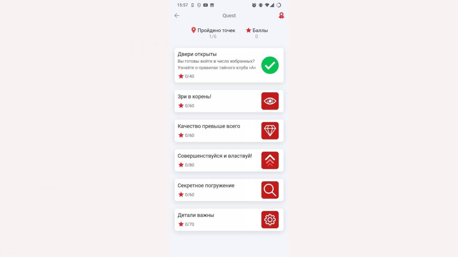 - 100% вовлеченность. Критерии оценки: прохождение каждой точки квеста, отсутствие «проваленных» заданий, активность в чате.