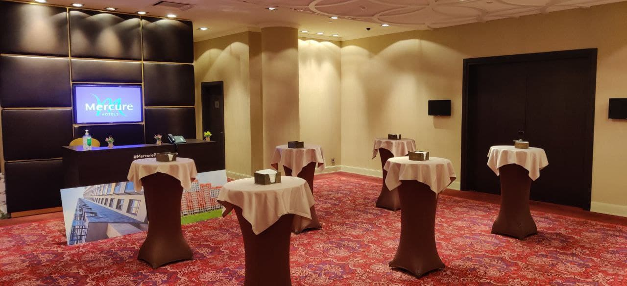 Оценив все факторы, мы выбрали «Mercure Москва Павелецкая» из-за большой площади (в здании находятся другие отели, лобби которых можно использовать) и функциональности пространства.