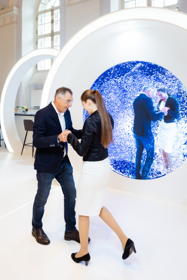 Посетители стенда могли создавать свою собственную картину будущего, в котором их силуэт служил основой для цифрового арта, разработанного совместно с видеохудожником. Когда гость попадает в зону инсталляции, она словно оживает, управляемая его движениями. На экранах отображается интерактивный диджитал-контент, олицетворяющий прогресс.