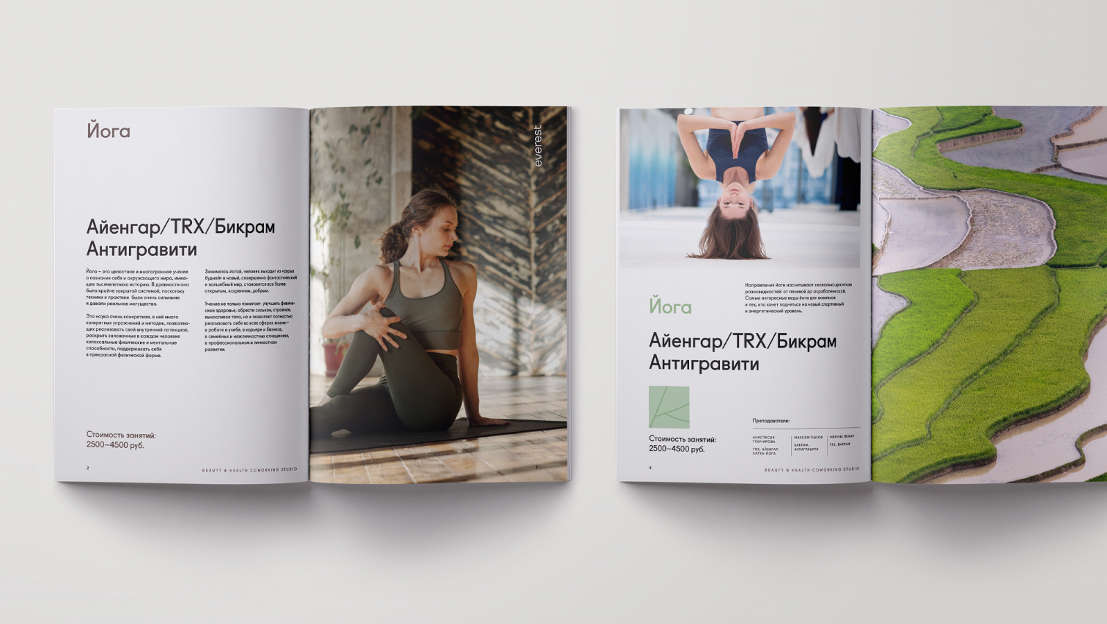 Поскольку само позиционирование и широкий функционал центра уникальны для категории, важно было подобрать емкий и понятный дескриптор, избежать узкого определения, такие как «салон красоты» или «центр здоровья», и отстроиться в восприятии от «очередной студии йоги». Beauty & health coworking studio — решение, состоящее из понятных и легкочитаемых слов. Оно смогло объединить все ключевые направления центра.