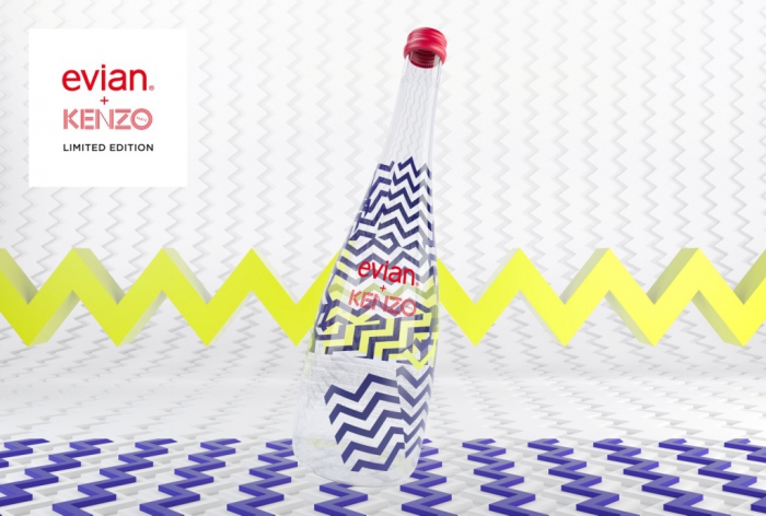 Бренд минеральной воды Evian совместно с французским домом моды Kenzo выпустили ограниченную серию бутылок в игривом и в то же время загадочном дизайне. Креативные директора Kenzo - Кэрол Лим и Умберто Леон – объединились с Evian, чтобы выразить свое видение новой бутылки. Коллекция осень-зима 2014 от Kenzo имеет четкие отклики таинственного и безумного мира режиссера Дэвида Линча - именно эти мотивы нашли отражения в дизайне бутылки.