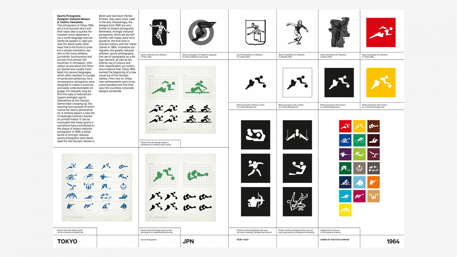 Эволюция визуального оформления Олимпийских игр — это путь от простых эмблем к сложнейшим дизайн-системам, отражающим дух времени и национальную идентичность. В оформлении Игр первой половины XX века использовались детальные художественные иллюстрации и литографии с изображением атлетов. Из официальной символики существовала только эмблема из пяти переплетенных колец, символизирующая союз пяти частей света. Знакомые всем условные изображения (пиктограммы) спроектировали лишь в 1964 году в Токио, чтобы помочь иностранным спортсменам и зрителям ориентироваться без знания языка.