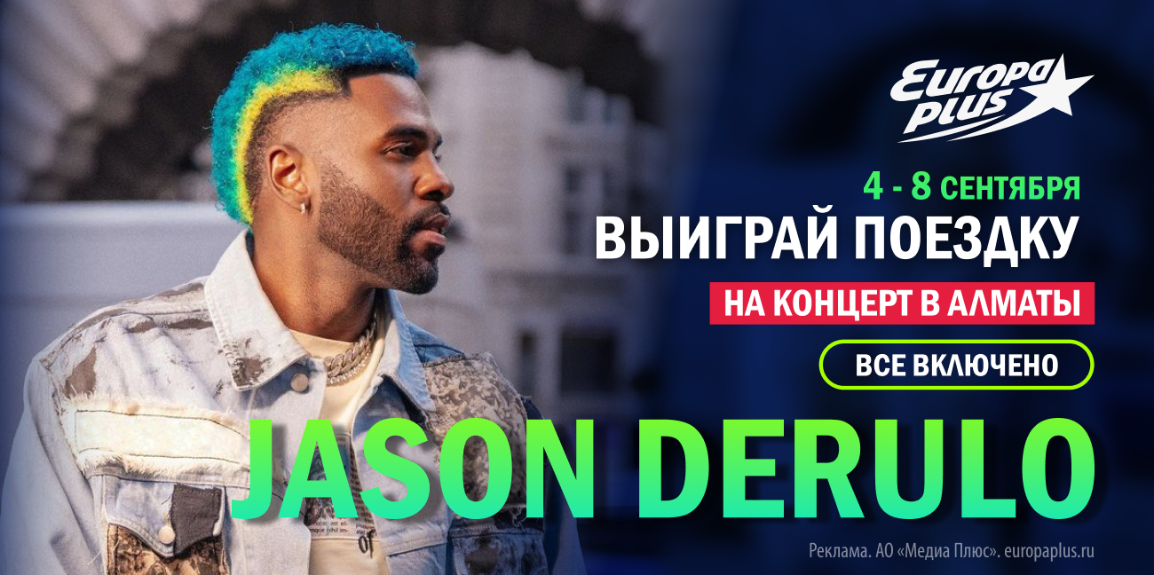 «Европа Плюс» разыграет пять путешествий для двоих на концерт Джейсона Деруло в Алматы. Помимо пригласительного на шоу победителю также обеспечат перелёт и проживание в отеле.
