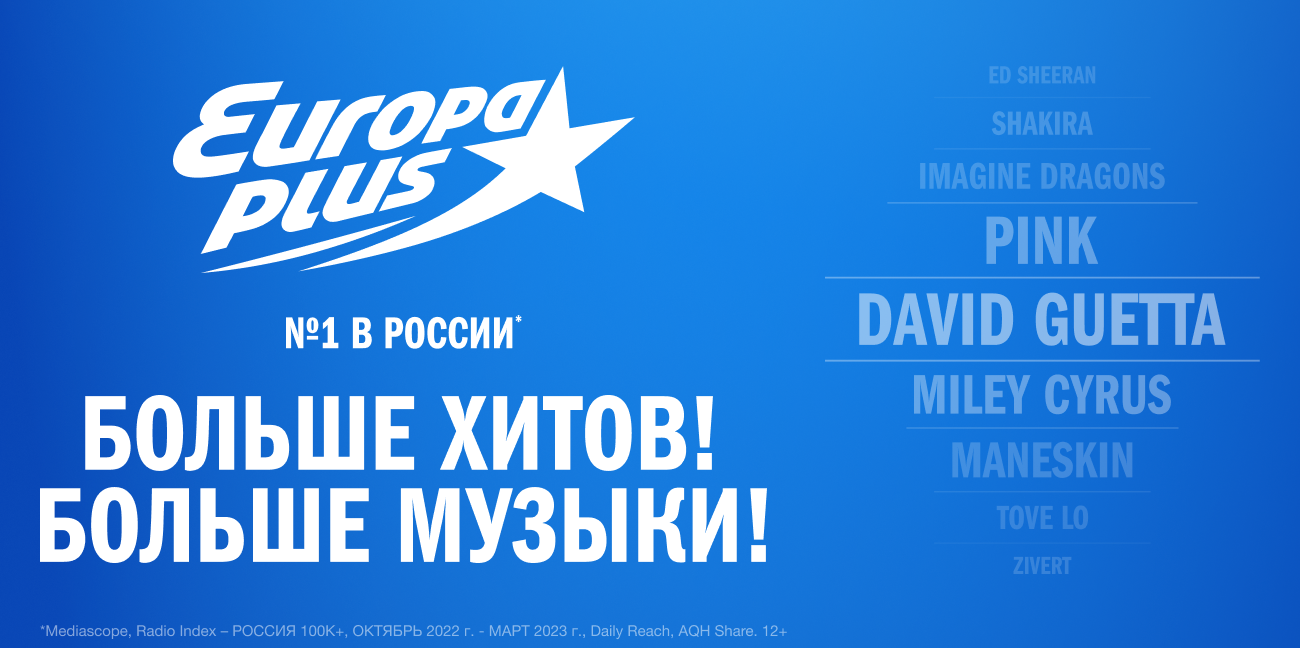 «Европа Плюс» подтвердила статус радио № 1 в стране, по данным исследования Mediascope за период с октября 2022 по март 2023 года*.