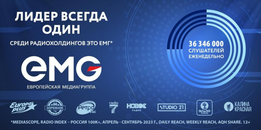 Европейская медиагруппа ЕМГ » сохраняет лидерство на протяжении 13 лет. Согласно актуальным данным Mediascope, совокупная аудитория радиостанций ЕМГ — более 19 миллионов слушателей ежедневно и более 37 миллионов еженедельно, что составляет самую большую долю рынка по аудитории — 24,4%.