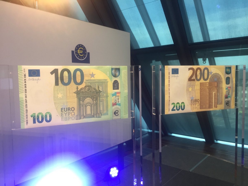 Европейский Центральный банк (ЕЦБ) впервые показал образцы новых банкнот достоинством €100 и €200, которые вступят в обращение 28 мая 2019 года.