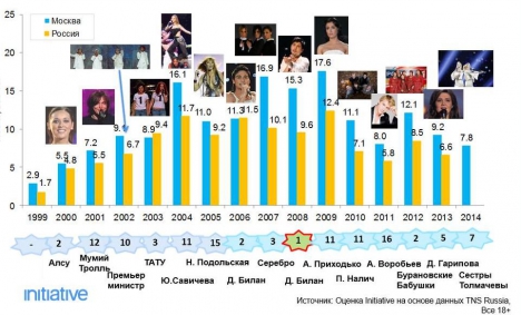 «Общее снижение интереса к Евровидению у российских телезрителей – долгосрочный тренд, который наблюдается с 2009 года. А в 2014 году не было национального отбора, анонсирующего конкурс, и это также могло повлиять на рейтинг самой трансляции Евровидения», – отметила генеральный директор Initiative Анна Яковлева.