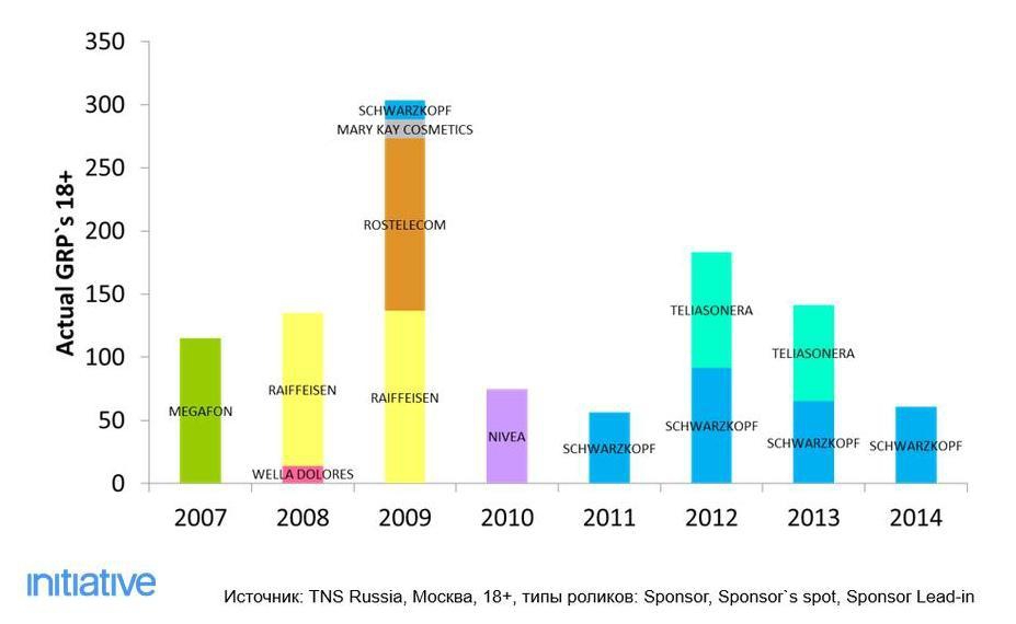 Исходя из аналитических данных Initiative, у компании Schwarzkopf, которая выступает спонсором Евровидения уже 4 года, зафиксирован самый низкий показатель GRP в Москве за последние 3 года.