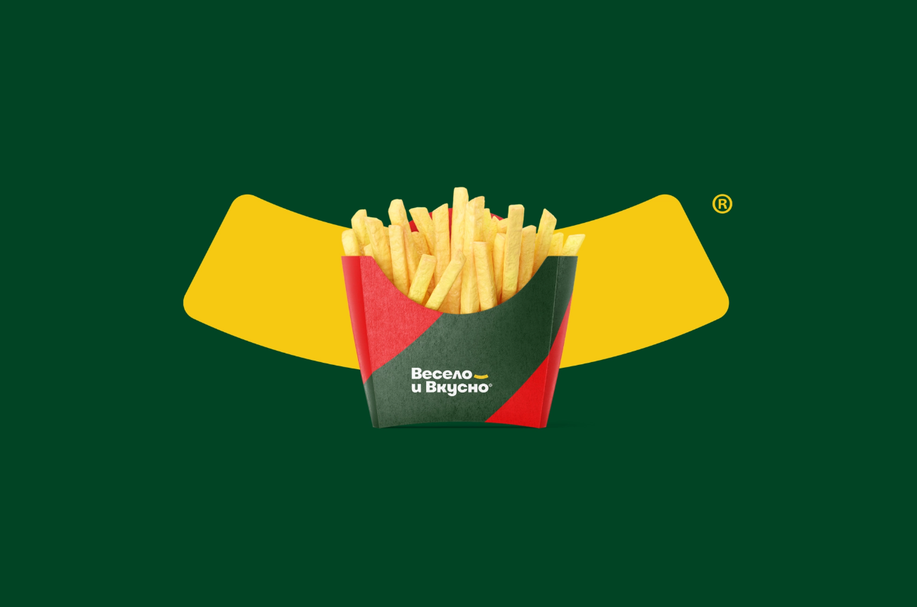 Бывшая сеть «Макдоналдс» утвердила новый логотип — две палочки и кружок, сложенные в букву «М» на фоне зелёного круга. В экс-сети «Макдоналдс» сообщили Sostav, что разработкой занималось агентство «Родная речь». Палочки символизируют картошку фри, а маленький оранжевый круг — аллюзия на бургер.