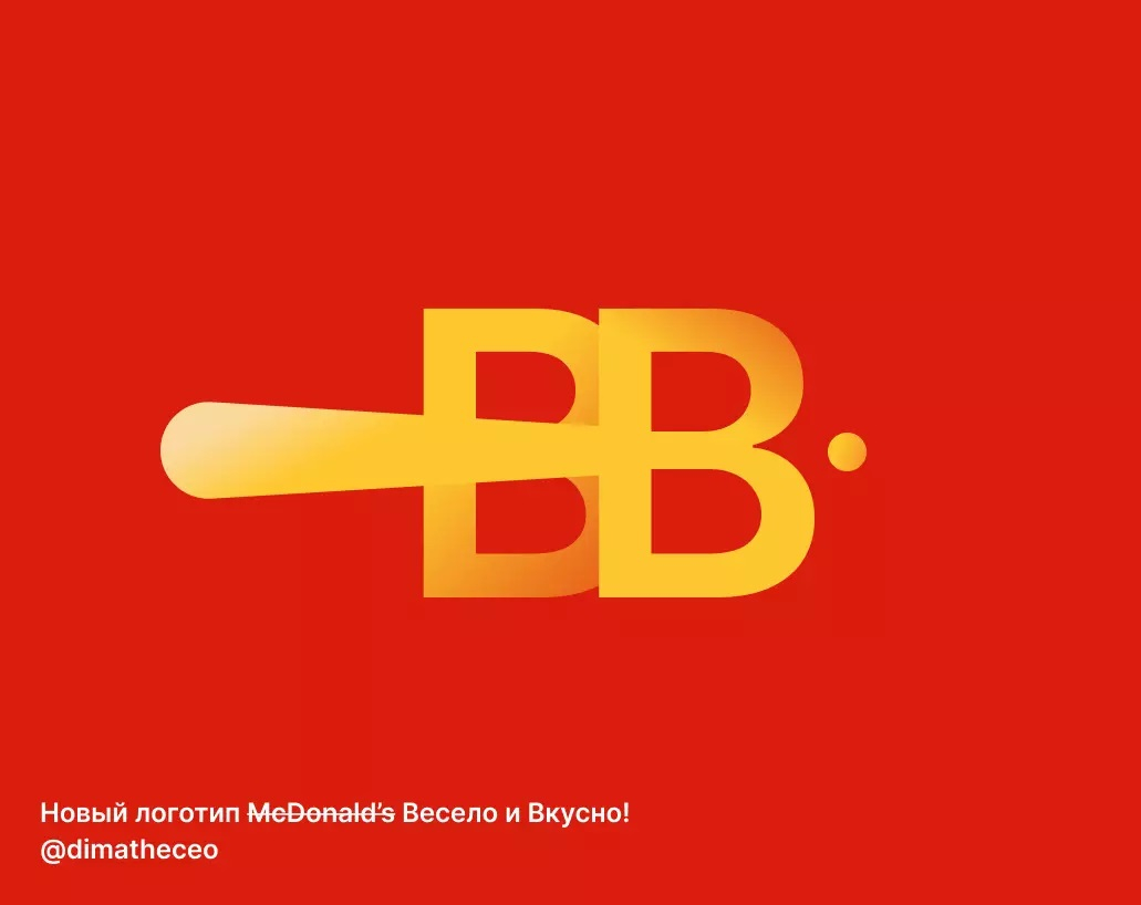 Dmitry обыграл букву «В», перевёрнутую горизонтально. Таким образом «В» напоминало букву «М» — логотип сети «Макдоналдс». Автор уточнил, что «все логотипы — стёб, выдумка и юмор».