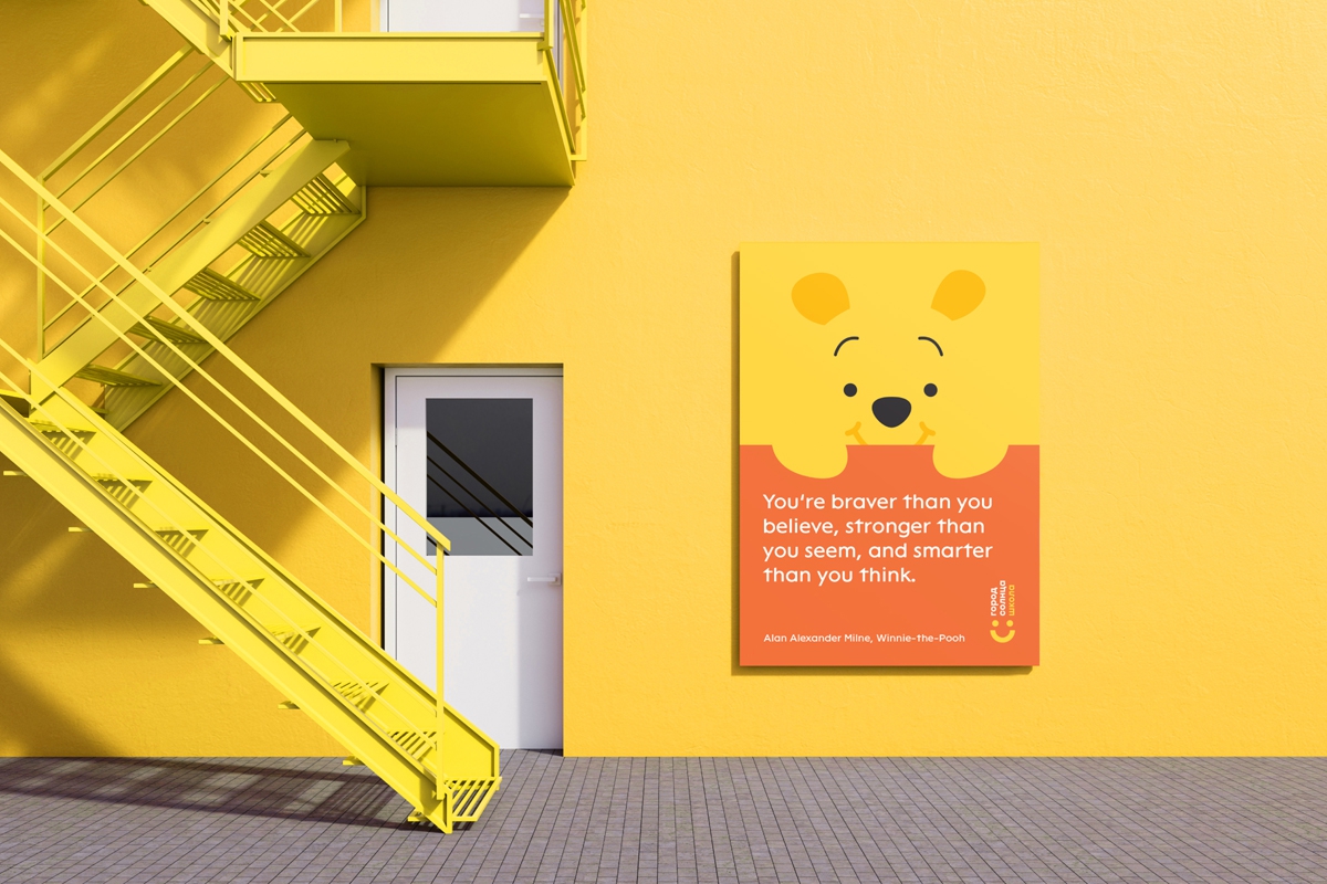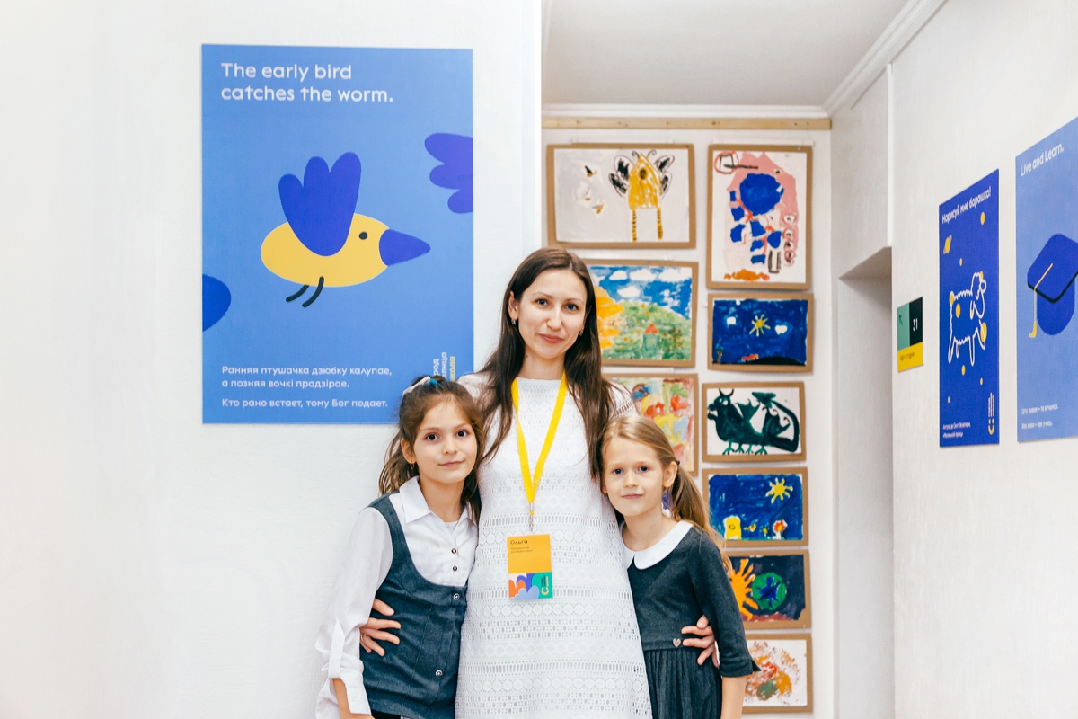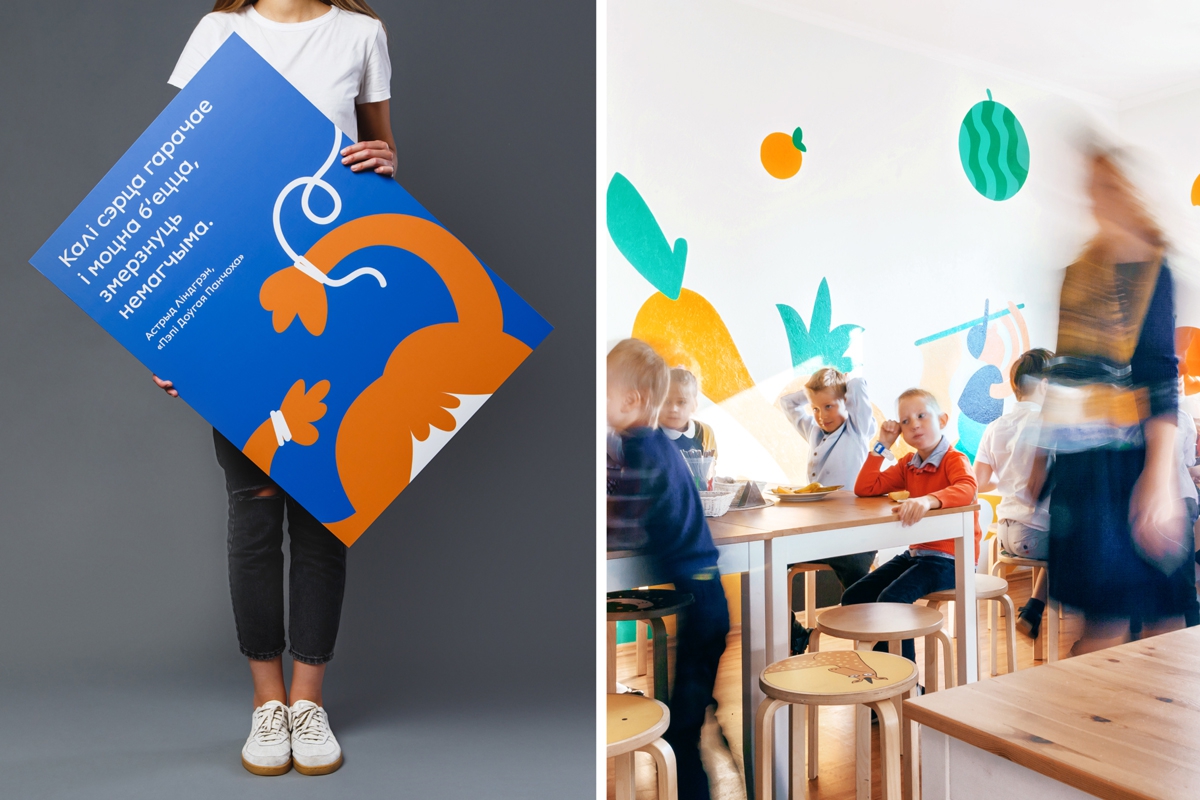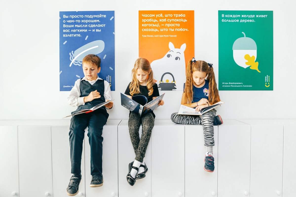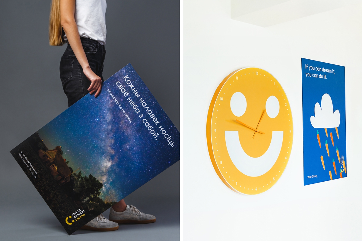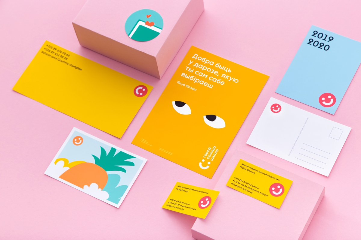 На этапе создания позиционирования были проанализированы все возможные точки контакта детей, родителей и учителей с брендом образовательного комплекса. Это помогло создать уникальное пространство, отражающее философию школы в мыслях, знаках, лицах: Слава Полунин, Антуан де Сент Экзюпери, Туве Янссон, Янка Купала, Максим Богданович, Уолт Дисней и другие.