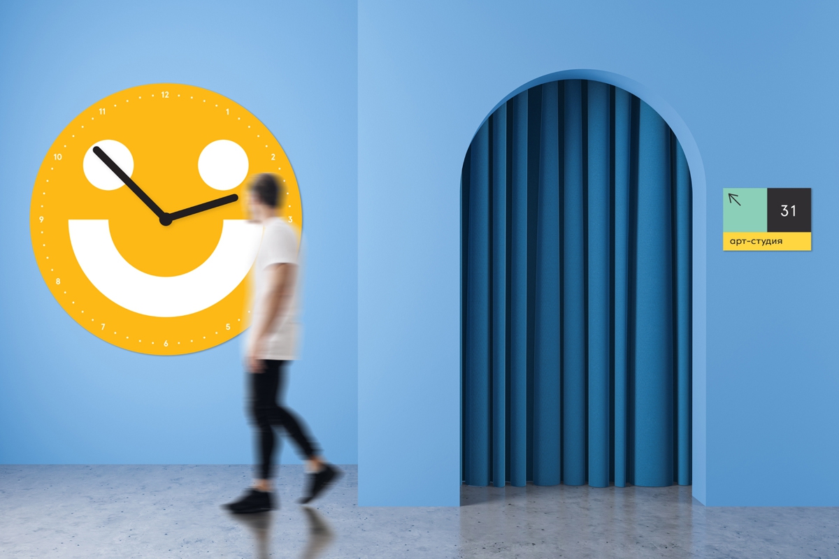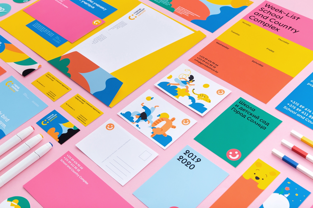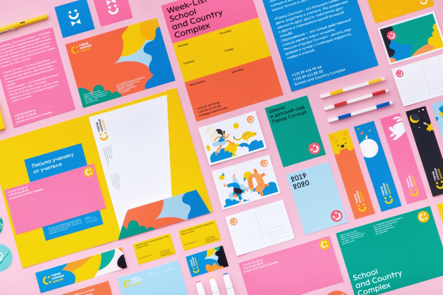 Креативной командой Fabula Branding была разработана и внедрена система навигации, забрендирован фасад школы, учебные помещения и корпоративные материалы. Буквально каждая деталь в «Городе Солнца» транслирует ценности бренда и погружает в его дружелюбное пространство.