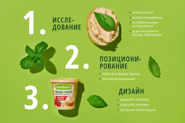 Структурность дизайна плашки в центре упаковки помогла доступно и прозрачно рассказать о составе сыров. Нам было особенно важно подчеркнуть это, потому что клиент провел огромную работу по стандартизации качества сырья, тем самым улучшив качество продукта. Уверен, что ежедневное потребление и любовь станут постоянными спутниками обновлённого и созданного нами бренда Bonfesto.