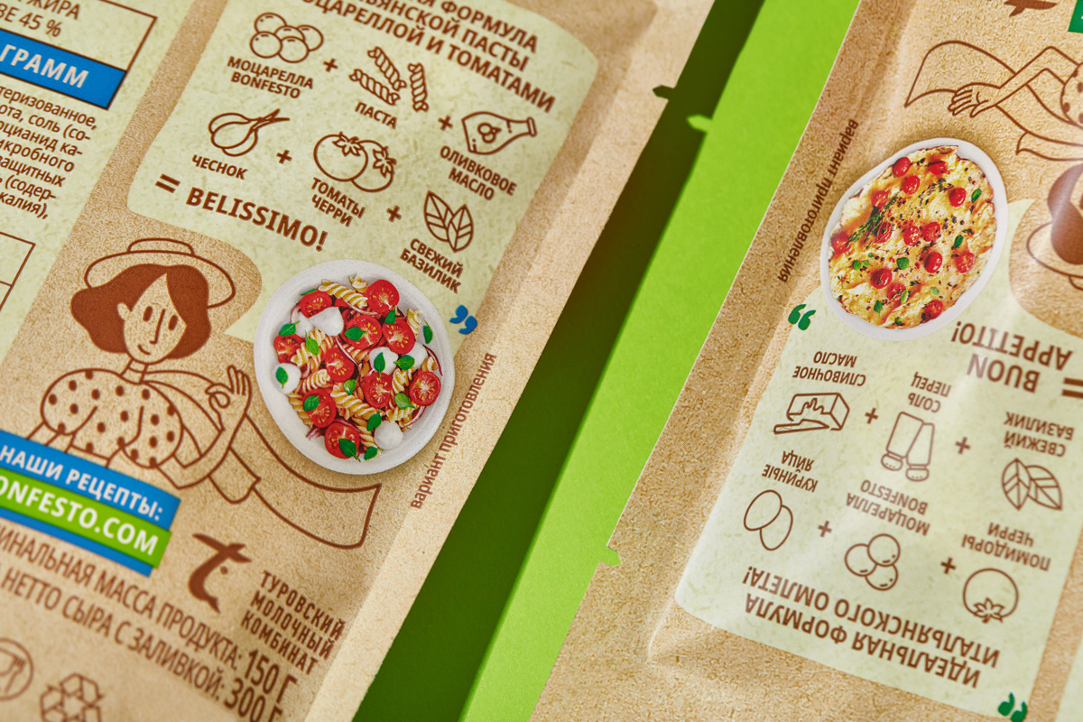 Кроме того, изменения коснулись и фудзоны — теперь на ней фото сыров и блюд, которые можно из них приготовить. Как отметили в Fabula Branding, дизайн Bonfesto стал более адаптивным: оформление облегчает вывод на полки новых позиций в других категориях — бренд выглядит целостным, узнаваемым и формирует бренд-блок на полке.