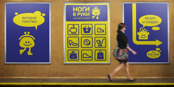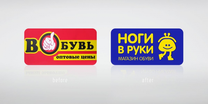 Fabula Branding провела комплексную разработку торговой марки (нейминг, логотип, дизайн интерьеров) сети магазинов обуви по оптовым ценам для белорусской компании «Минобувьторг». Название «Ноги в руки» возникло из известной поговорки «взять ноги в руки», означающей «куда-то спешить, торопиться». Теперь выражение получило еще один смысл - «покупать обувь легко и быстро»: так появилось позитивное и запоминающееся имя ТМ сети магазинов дешевой обуви.