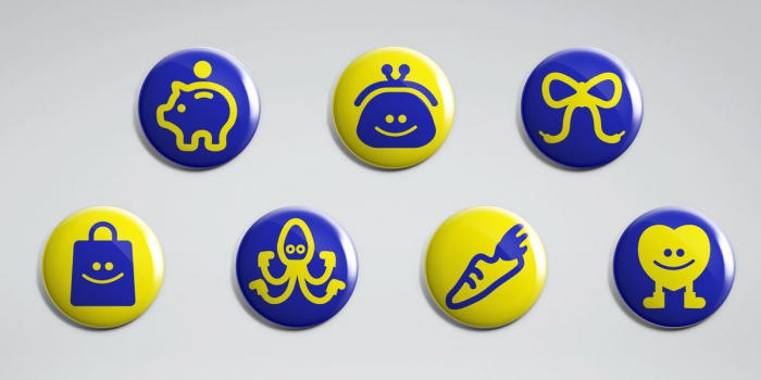 Легкость знака делают его хорошим визуальным маркером, подходящим для различных вариантов оформления витрин и интерьера, а мягкость форм элементов логотипа усиливают восприятие бренда как дружелюбного и открытого. Специально для айдентики ТМ была разработана система иконок, которые являются не только элементами фана, но и лучше помогают раскрывать специфику магазина.