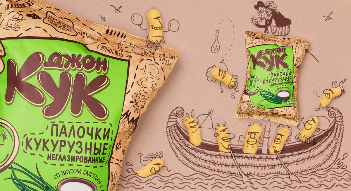 Специалисты агентства Fabula разработали новый бренд снеков «Джон Кук» специально для компании «Лидкон». В рамках проекта креаторы поработали над неймингом и упаковкой кукурузных палочек.