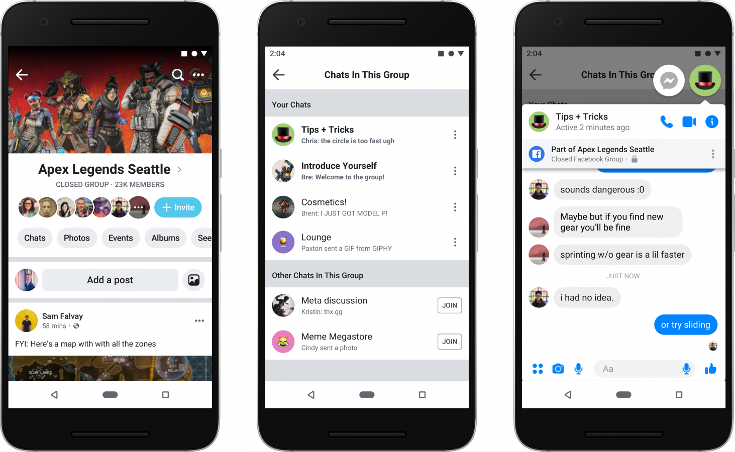 Свою миссию Facebook видит в том, чтобы облегчить переход из публичного пространства в более «интимную» обстановку и подтолкнуть аудиторию к осмысленному общению. Соцсеть запустила ряд новых инструментов, упрощающих поиск релевантных сообществ и общение внутри групп. Например, в сообществах, посвященных здоровью, пользователи смогут анонимно задать вопрос или поделиться информацией — их имя не появится в публикации. В группах, где люди ищут работу, появится новый шаблон для размещения вакансий. Благодаря ему пользователи смогут сразу откликнуться на вакансию и связаться с работодателем через Facebook. В геймерских сообществах появится возможность создавать отдельные чаты для обсуждения различных тем, а в сообществах «Покупка/Продажа» зрители прямых трансляций смогут, не прерывая live, задать вопросы продавцу и оформить заказ.