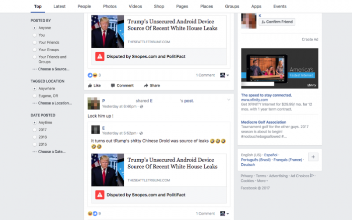Facebook запустила функцию маркировки новостей, которые вызывают у пользователей сомнения в их подлинности. Новый алгоритм позволяет ставить напротив фейковой новости специальный значок, которые увидят все пользователи социальной сети, пишет Gizmodo.