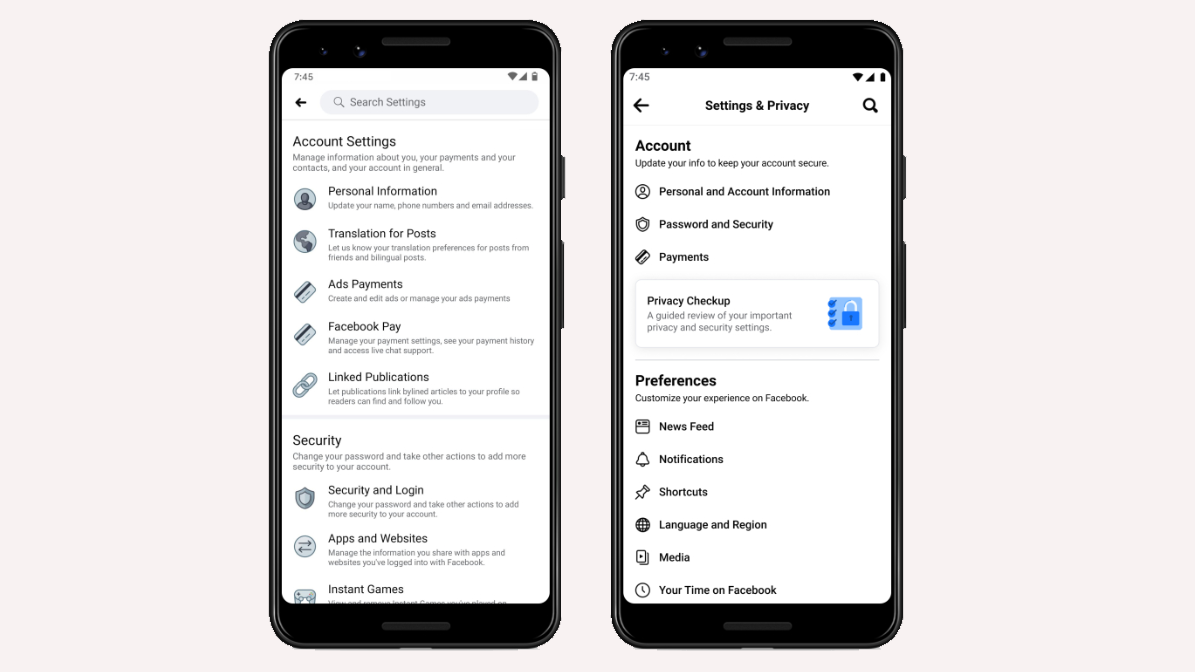 «Мы переработали все меню настроек на мобильных устройствах, чтобы упростить поиск. Вместо того, чтобы размещать настройки на почти 20 разных экранах, теперь они доступны из одного места », — сказано в новости Facebook.