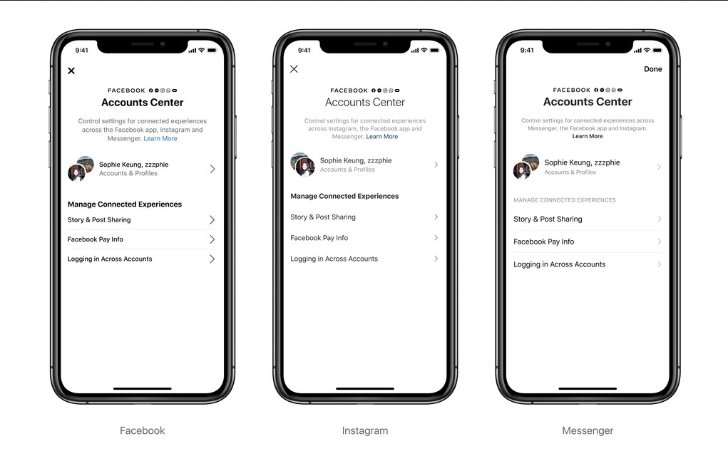 Использование Центра учетных записей и подключенных интерфейсов является необязательным, пользователи выбирают его по желанию. Facebook отмечает, что пользователи могут иметь разные имена в соцсетях, а для кросс-постинга использовать Accounts center.