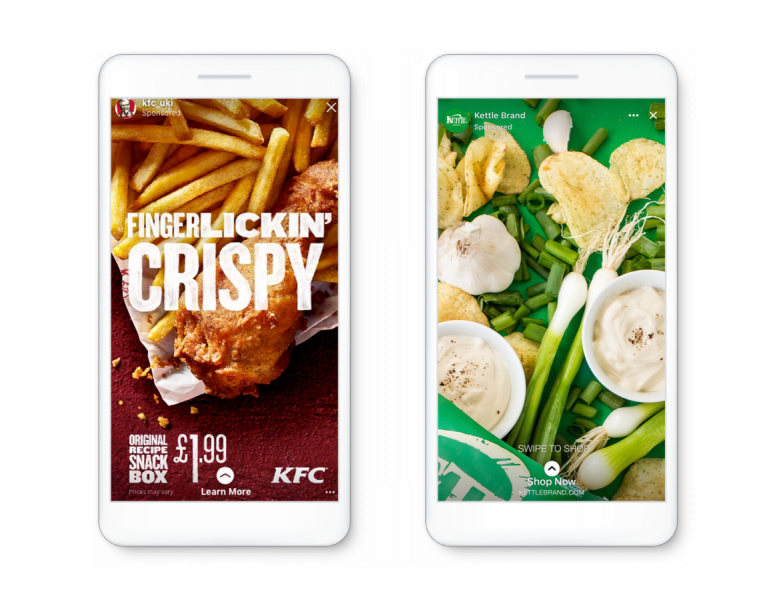 По данным соцсети, более 300 млн человек используют Facebook Stories и Messenger Stories каждый день. Ожидается, что в 2019 году историй станет больше, чем публикаций в новостной ленте. Реклама в историях включает три формата: видео, изображение и слайдшоу. Бренд может выбрать одну из семи бизнес-целей (как в Instagram): узнаваемость бренда, конверсия, лидогенерация, установки приложения, охват, трафик, просмотры видео.