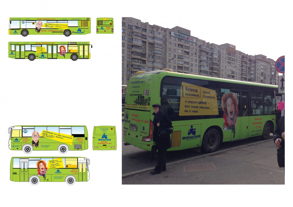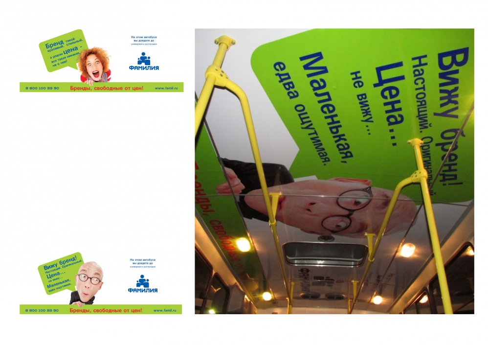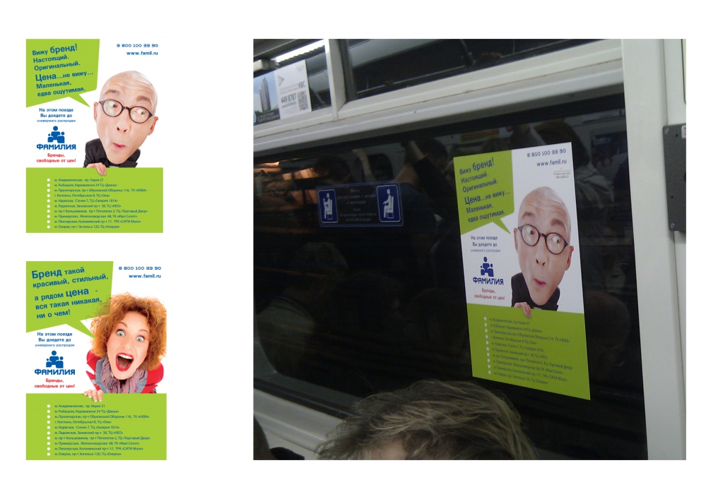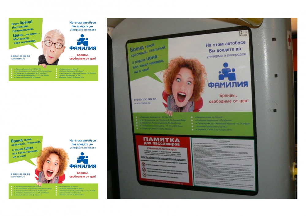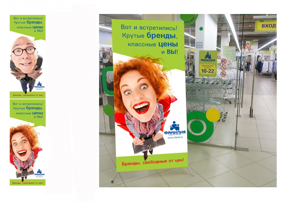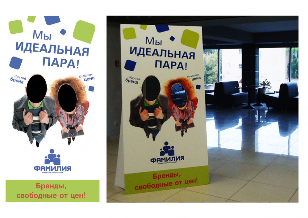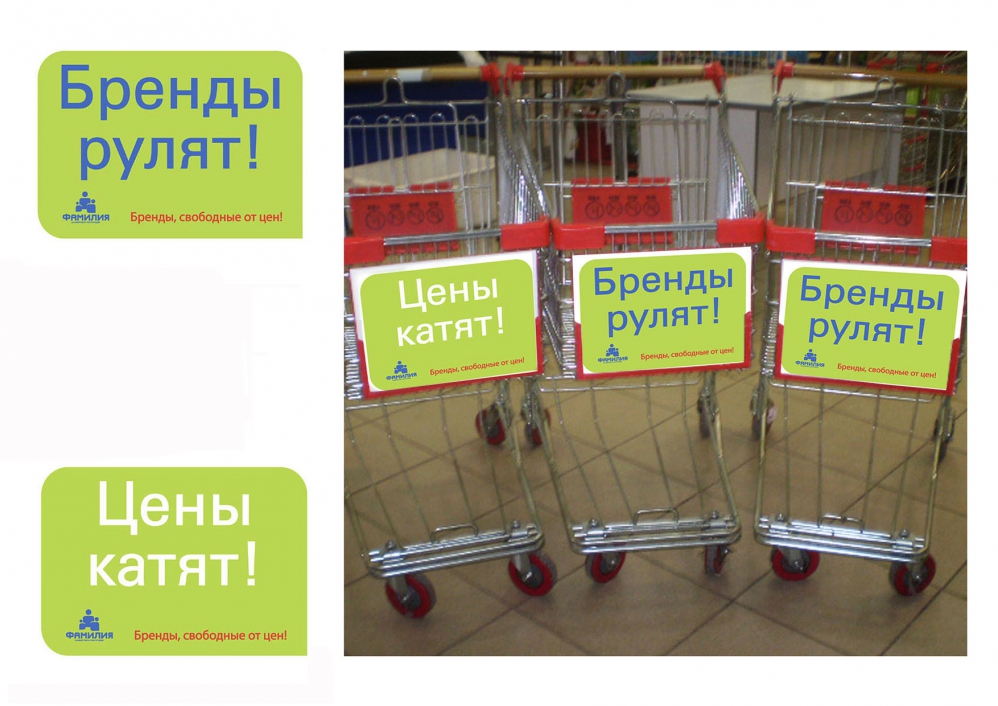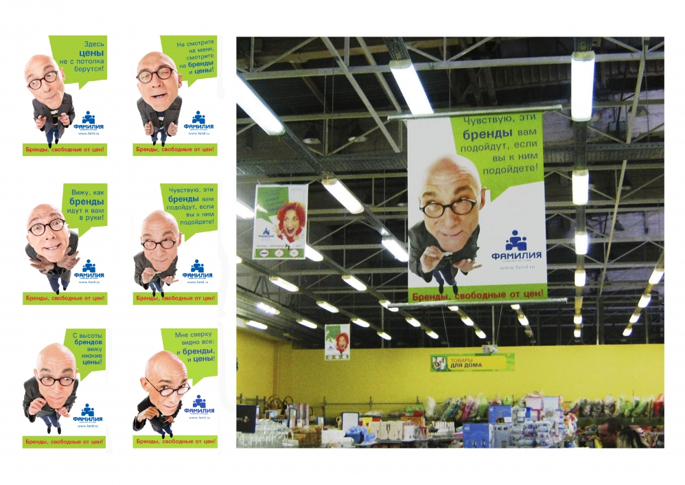 Лицами новой кампании стали комедийные актеры Павел Кабанов и Татьяна Лянник. Директор по маркетингу сети «Фамилии» Юлия Данилина отметила, что в основу концепции рекламной кампании легла бизнес-модель ритейлера, заключающаяся в прямых поставках от производителей, и следовательно, более низких ценах.