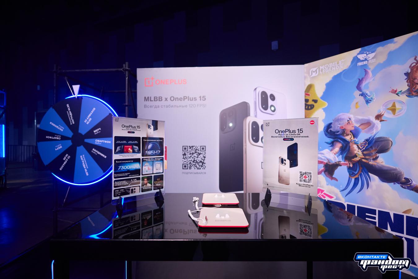 - Игровая зона с Mobile Legends: Bang Bang — посетители тестировали OnePlus 15 в матчах и дуэлях 1×1.