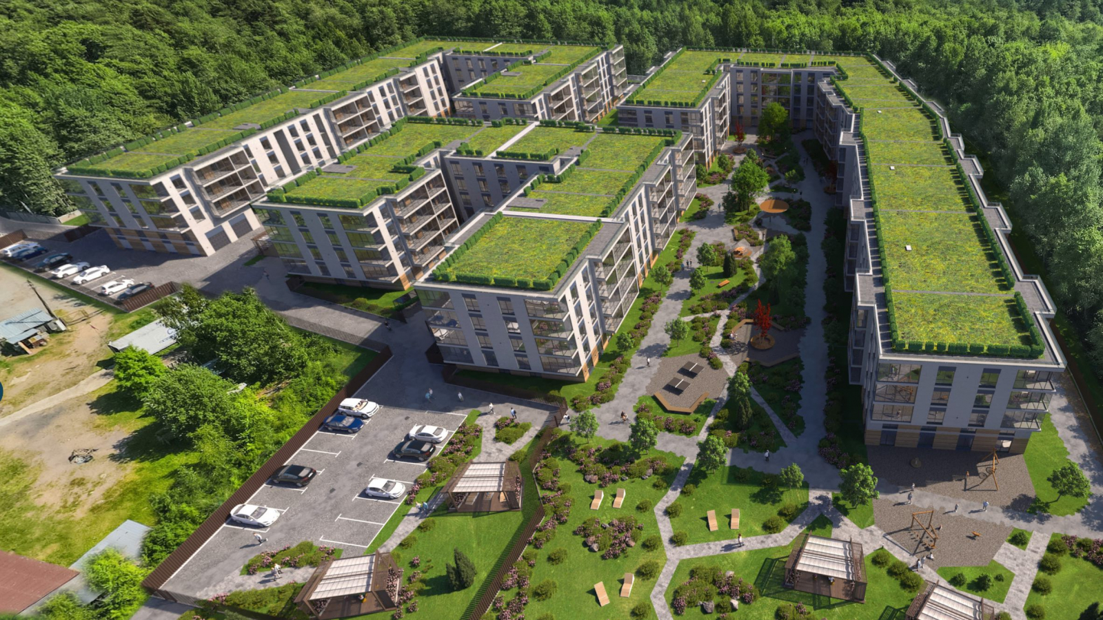 Дело в том, что на сайте застройщика размещены изображения жилого комплекса «Bereg.Курортный», на которых видно, что территория между его корпусами благоустроена, в том числе имеются теннисные столы.