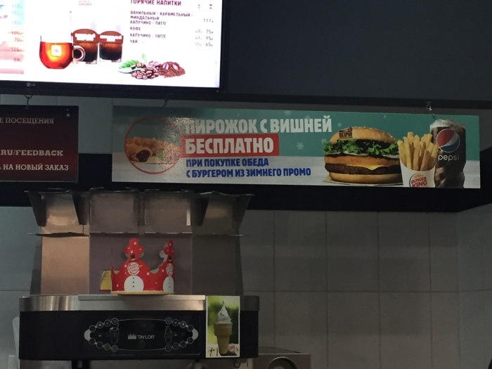 В результате, экспертиза управления установила, что реклама, обещавшая бесплатный пирожок с вишней «при покупке обеда с бургером из зимнего промо», была недостоверной и ввела клиента в заблуждение, что в свою очередь, является нарушением закона «О рекламе». По решению ведомства, материалы дела будут переданы уполномоченному должностному лицу управления для наложения административного штрафа. По закону за подобное нарушение предусмотрен административный штраф на юридическое лицо от 100 до 500 тысяч рублей.